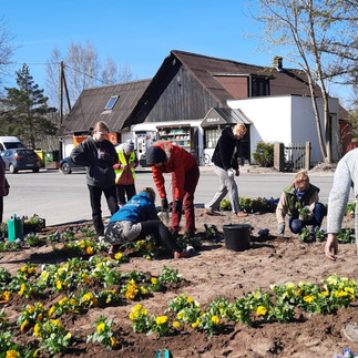 Mežiniekos lepojas ar kopīgi radīto puķu dobi.